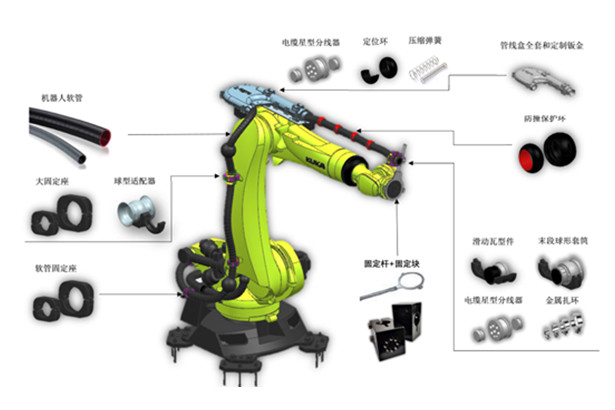 機器人管線包定位環(huán)軟管穿板連接器軟管連接器滑動瓦型件末端球型套筒軟管固定座防撞保護環(huán)固定管夾系統(tǒng)球型適配器固定座內(nèi)夾機器人軟管協(xié)作機器人管線包應(yīng)用案例